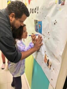 Las más pequeñas realizaron una actividad para celebrar el día del padre. Prepararon con mucha ilusión un póster de fotos y el viernes lo completaron dibujando la mano de su padre. También les prepararon una merienda sorpresa y unas cervezas decoradas para la ocasión ¡muy originales!.